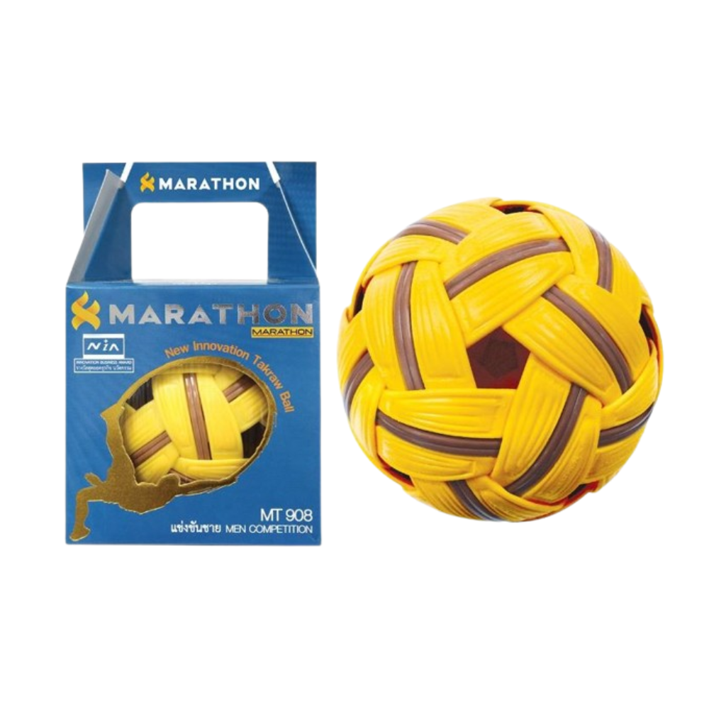 The Marathon is "original inventor" of Synthetic Takraw ball with modern production technology. The quality, standard and safety of this ball can be ensured. This is also the Asian Games Official Competition Ball.