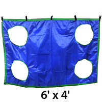 This soccer shooting training target can be easily rolled up and transported. It can be installed over an existing soccer goal. The target goal holes to help players more precisely to shot in every angle and different distance .The soccer shooting training target's upper edge can be tied in place to the goal rear crossbar using a weighted rope and the bottom corners of the target can be tied down using elastic cord and stakes in order to render the target stable in the presence of wind.