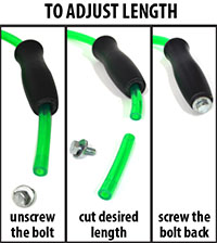 Thai Style Jump Rope increases caloric expenditure and improves upper body strength. Ideal for boxers, martial artists, wrestlers and jumpers who like a heftier rope. - Easy-to-grip seasoned Rubber-wood handles with 12mm green color vinyl tube.