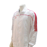 Features: - Water repellant fabric for your protection. - Reflective fabric ensure optimum visibility in low light conditions. - Folds into its own pocket for easy storage. - Garment is zip secured with velcro seals to ensure maximum protection. - Side pockets button secured, to ensure minimum water seepage and to keep your items from falling out. - Inner mesh insert for effective ventilation to keep you cool. - Elasticized cuffs. - Head cover hood, button and string secured. Can be stored away with velcro secured, fold-in compartment at collar. - Adidas brandmark on left chest. - 3 stripes down both sleeves. - Material 100% Polyester, 100% Nylon