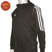 This product has been designed and constructed for the fit and comfort of the asian body. The Adidas logo is printed on the left chest. The 3 stripes trademark of Adidas is on the outer part of both sleeves. It has a zipper on front to close the jacket.