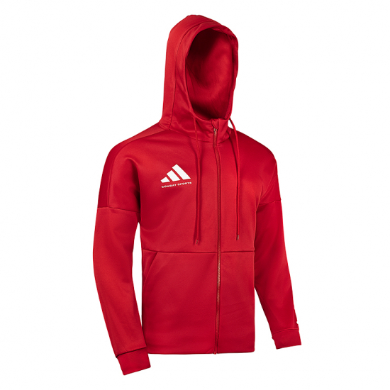 The adidas hooded sweat jacket is made from 100% polyester fleece. It has a unisex cut with a full-length zipper. The light material (250 g/m2) ensures a comfortable fit and a secure fit. Additionally with elastic bands on the sleeves and adidas logo print on the right chest. The jacket can be combined with matching trousers as a tracksuit.