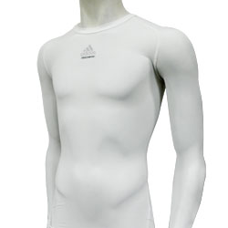 On the court and in the gym, it's all about the right gear. That's why the adidas TECHFIT Cut and Sewn Long Sleeve Top has compression for explosive muscle power, plus CLIMALITE to wick sweat away from skin. With soft fabric and flatlock seams for nonabrasive comfort. Heat transfer adidas TECHFIT™ brandmark at center chest.